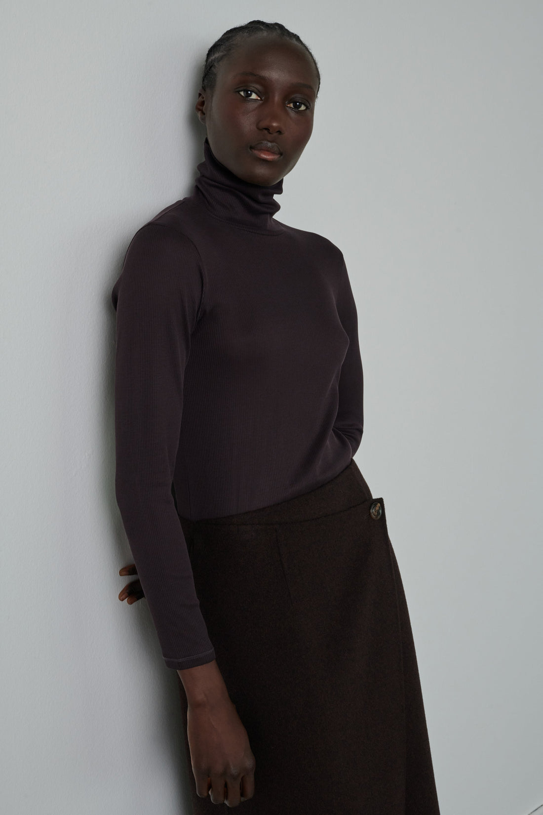 Asymmetrical double-sided wool wrap skirt - Asymmetrical wrap skirt- A-line, high waist- Buttoned on the side- Welt pocket on the back- Front and back darts